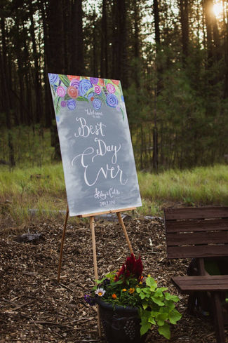 Recently, I had the opportunity to do some hand-lettered signs for a wedding. The bride wanted three signs: a welcome sign, one that said, “worth the wait”, and another reading “with my whole heart, for my whole life.” As the bride was an avid lover of all things floral, I decided to have a bit of fun with the former and place the words on a floral background. I loved being able to practice my painting skills with a piece that combined the fine art with typography. For the other two signs, I kept things a little simpler. I brushed the phrases on wood panels with a cream acrylic paint in a fun, script font. To match with the other decorations of the wedding (as well as the personality of the bride) I decided last minute to add a few hand-drawn floral elements around the typography to add bit more decoration and I am so happy with the result! You might have seen my fingerprint around a few other signs and decorations around the wedding, but these three pieces held my heart, and I am so glad that the happy couple decided to hand on to those signs even to this day.